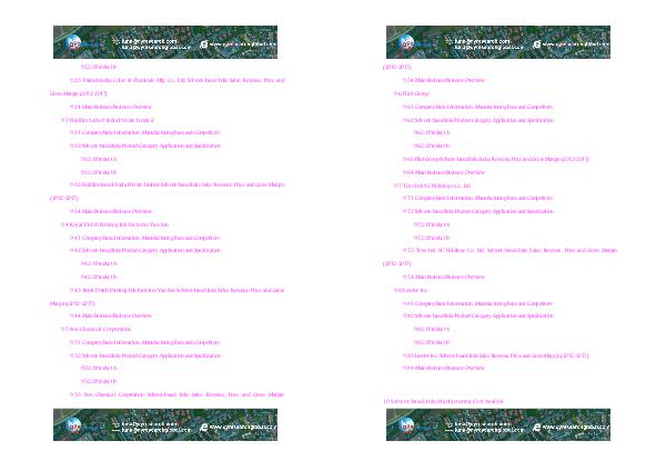 9.4.2 Solvent-based Inks Product Category, Application and Specification