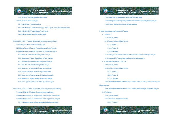 6 Global 2012-2017 Twizzler Segment Market Analysis( by Type) 6.1 Global 2012-2017 Twizzler Sales by Type 6.2 Different Types of Twizzler Product Interview Price Analysis 6.3 Different Types of Twizzler Product Driving Factors Analysis