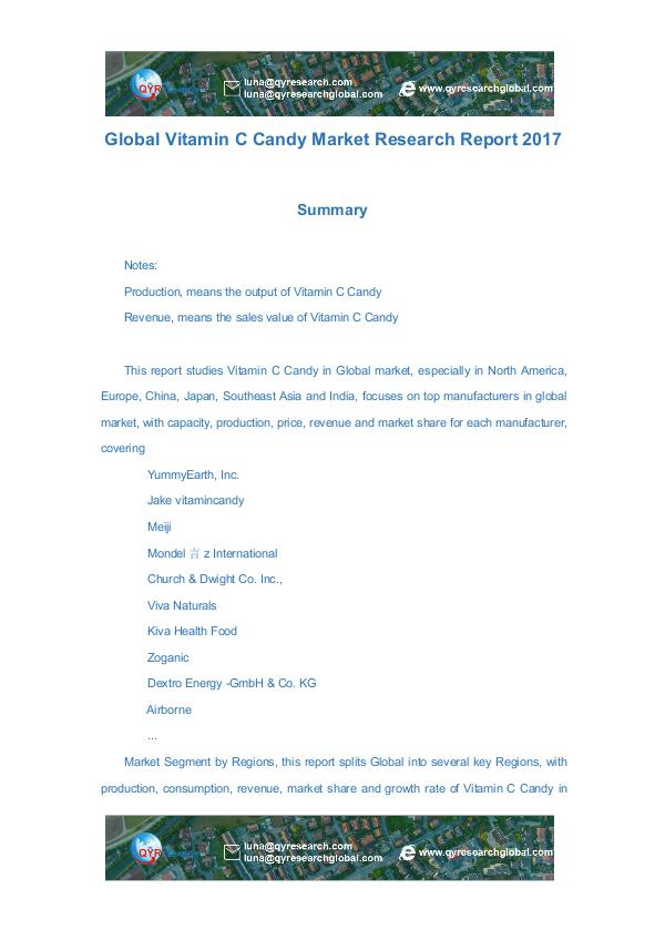 QYRESEARCH Global Vitamin C Candy Market Research Report 2017