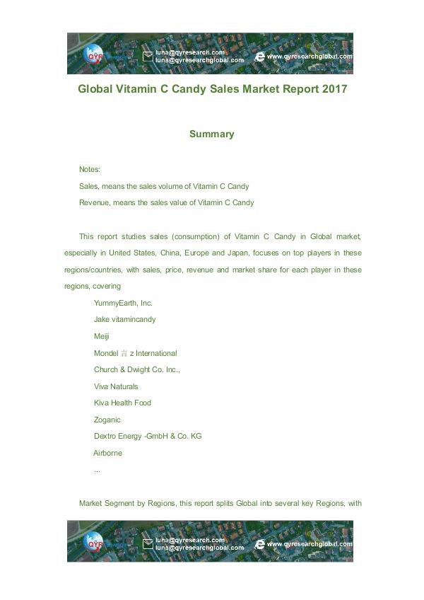 QYRESEARCH Global Vitamin C Candy Sales Market Report 2017