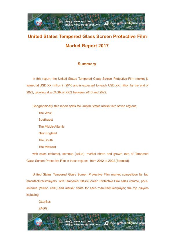 QYRESEARCH United States Tempered Glass Screen Protective Fil