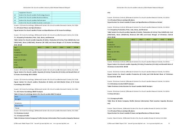 Source: CC Home Furnishings, QYResearch lantern for church candles Research Center, Oct 2016