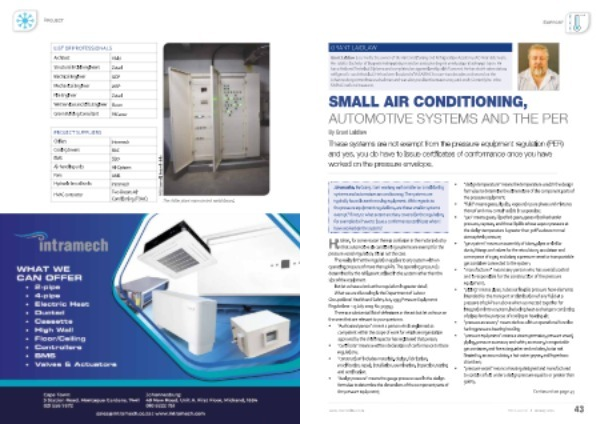 Johan asks : Hi Grant , I am working with smaller air conditioning systems and automotive air conditioning . The systems are typically found in earth moving equipment . With regards to the pressure equipment regulations , are these smaller systems exempt ? If not , to what extent are they covered in the regulation , for example do I have to issue a conformance certificate when I have worked on the system ?