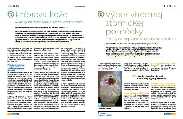Doteraz pretrváva mýtus , že stómiu nie je možné sprchovať alebo akokoľvek vystavovať vode . Práve naopak , voda je ten najvhodnejší čistiaci prostriedok na stómiu a jej okolie . Samozrejme za predpokladu , že je zdravá , neporušená . V prípade , že z nejakého dôvodu nie je možné na očistenie okolia stómie použiť vodu , máme k dispozícii čistiaci prípravok Niltac vo forme spreja . V prvom rade je určený na odstraňovanie pomôcky . Postupujeme tak , že okraj podložky postriekame jemnou vrstvou spreja Niltac , čo zabezpečí ľahké odstránenie lepivej hmoty z pokožky . Na úplné dočistenie pokožky , či už od lepivej hmoty alebo i drobných nečistôt , nám výborne poslúžia Niltac čistiace obrúsky . Pred samotným nalepením pomôcky je potrebné kožu umyť teplou čistou vodou , dobre osušiť a až potom nalepiť samotnú pomôcku . Ak je koža citlivá , použijeme Stomahesive ochranný zásyp , ktorý pomáha vytvoriť ochrannú vrstvu na koži v okolí stómie , aby nedošlo k jej poškodeniu . Zásyp sa používa aj na kožu , ktorá je mokvajúca . Kožu môžeme ochrániť aj použitím ochranného filmu Silesse vo forme spreja alebo obrúskov . Silesse sprej alebo obrúsky vytvárajú jemnú bariéru medzi pokožkou a pomôckou a chránia ju pred podráždením , zvyšujú priľnavosť pomôcky a predlžujú jej životnosť . Jemná vrstva tohto prípravku môže byť nanesená aj opakovane , čo nám zabezpečí dokonalé priľnutie pomôcky k pokožke .