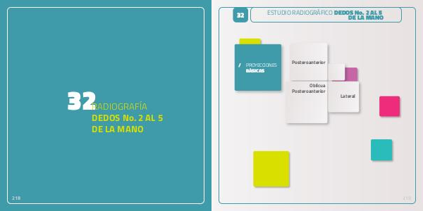 32 / ESTUDIO RADIOGRÁFICO DEDOS No. 2 AL 5 DE LA MANO PROYECCIONES BÁSICAS Posteroanterior Oblicua Posteroanterior Lateral 219