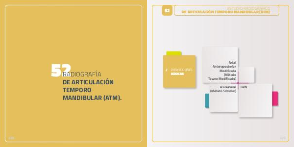 52 / ESTUDIO RADIOGRÁFICO DE ARTICULACIÓN TEMPORO MANDIBULAR (ATM) PROYECCIONES BÁSICAS Axial Anteroposterior Modificada (Método Towne Modificado) Axiolateral (Método Schuller) LAW 329