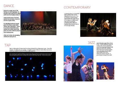 Contemporary is a beautiful dance which two of my daughters love to do. It is so lovely to watch when mixed with the right music. It's a mixure of ballet and jazz and it just flows. Contemporary dance is highlly physical and uses a lot of body strenth.