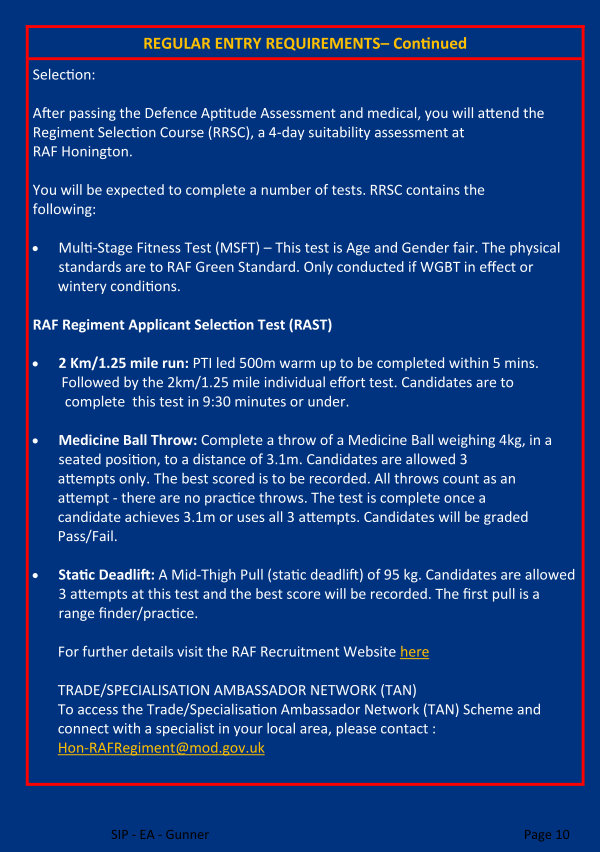 After passing the Defence Aptitude Assessment and medical, you will attend the Regiment Selection Course( RRSC), a 4-day suitability assessment at RAF Honington.