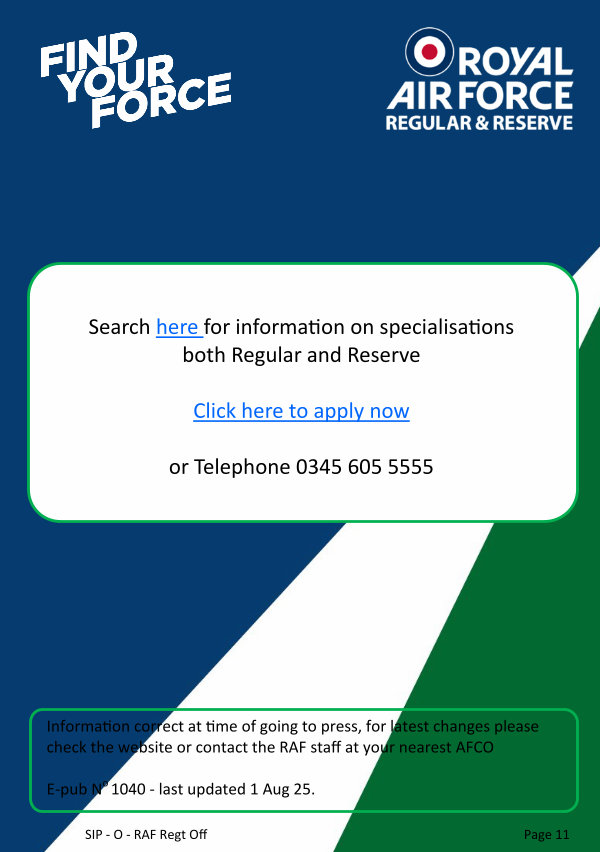 Information correct at time of going to press, for latest changes please check the website or contact the RAF staff at your nearest AFCO