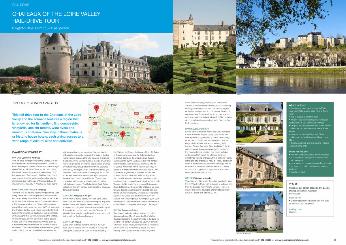 DAY NINE Chinon to London You return your hire-car to Tours this morning to take the TGV back to Paris, with a change of stations, and then the Eurostar from Paris to London. There is a service that leaves Tours just after midday and you arrive in London just after 16.30 hrs.
