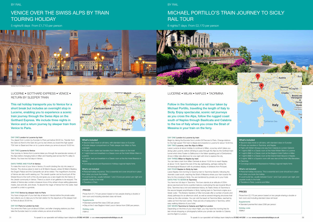 38 To speak to our specialist rail holidays team telephone 01392 441250 or see www. expressionsholidays. co. uk