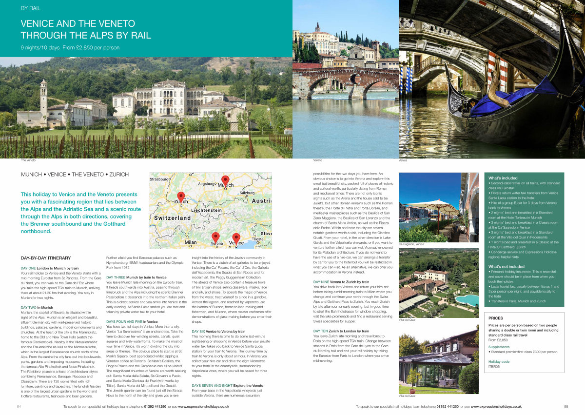 To speak to our specialist rail holidays team telephone 01392 441250 or see www. expressionsholidays. co. uk 55