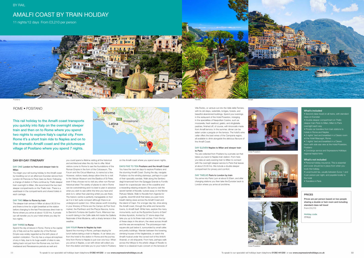 58 To speak to our specialist rail holidays team telephone 01392 441250 or see www. expressionsholidays. co. uk