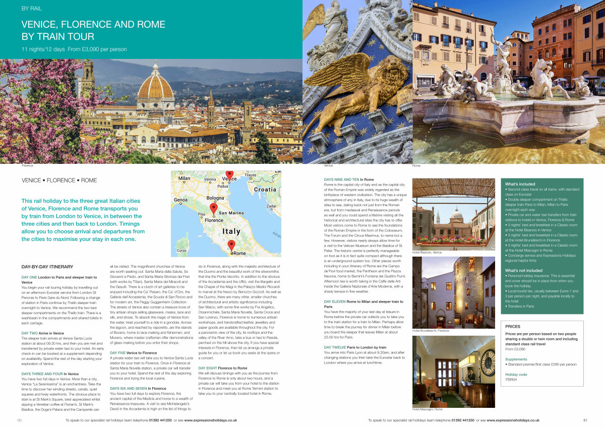 60 To speak to our specialist rail holidays team telephone 01392 441250 or see www. expressionsholidays. co. uk