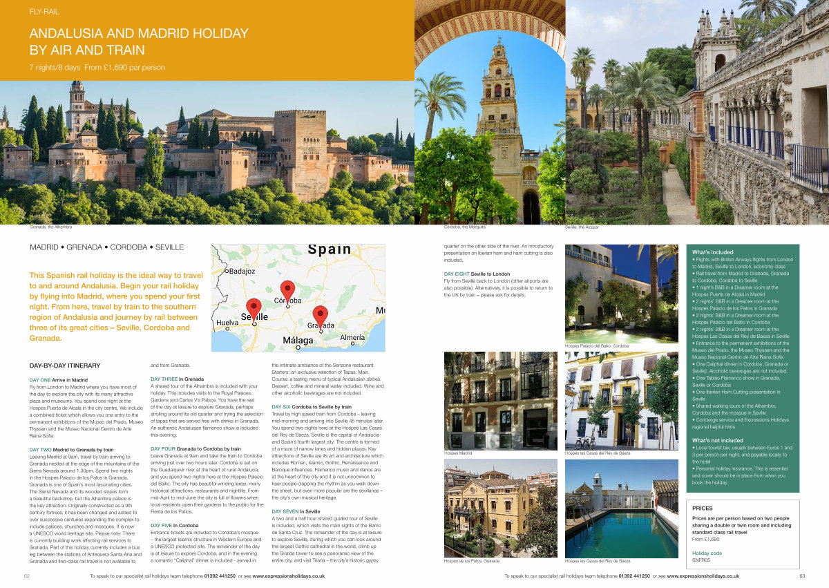 62 To speak to our specialist rail holidays team telephone 01392 441250 or see www. expressionsholidays. co. uk