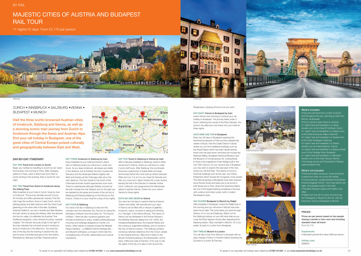 • Flights from the UK to Zurich and returning from Budapest or Munich to the UK, with rail travel from Zurich to Budapest or Munich