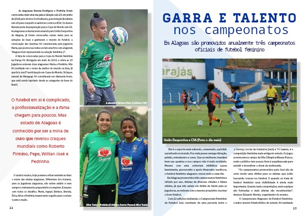O cenário mudou, hoje podemos vibrar também ao falar o nome das atletas alagoanas. Diferentes dos homens, para as jogadoras alagoanas, não existe salário e nem sempre o treinamento preparatório é completo. E mesmo com todos os desafios, Marta, Ingryd, Bárbara, Brenda, Érica, Alice e Pretinha, trazem tanto orgulho para o estado e para a nação.