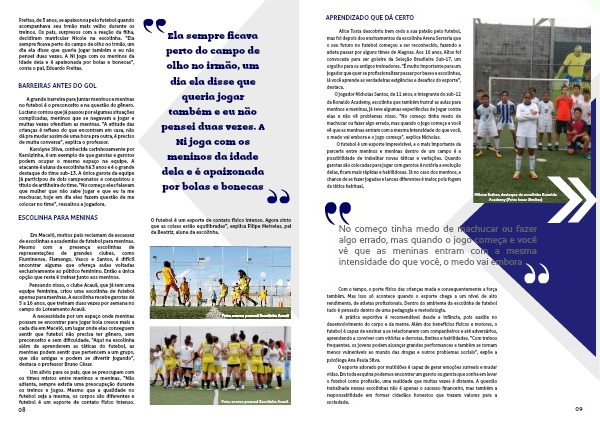 O jogador Nicholas Santos, de 11 anos, e integrante do sub-12 da Ronaldo Academy, escolinha que também instruí as aulas para meninos e meninas, já teve algumas experiências de jogar contra elas e não vê problemas nisso. “No começo tinha medo de machucar ou fazer algo errado, mas quando o jogo começa e você vê que as meninas entram com a mesma intensidade do que você, o medo vai embora e o jogo começa”, explica Nicholas.