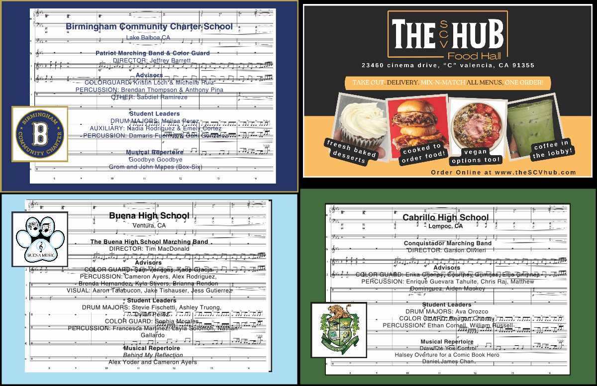 Advisors COLOR GUARD: Erika Cheney, Courtney Grimnes, Ellie Grimnes PERCUSSION: Enrique Guevara Tahuite, Chris Raj, Matthew Dominguez, Aiden Mackey