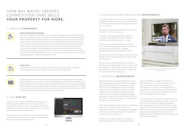 In addition to our ability to target broad audiences , Ray White Concierge , our communication specialists , unique to Ray White , can target one of the most influential audiences , our local communities . Our 118 years of real estate experience has enabled us to understand that a catalyst for creating competition is leveraging the local community and our data shows that in some cases , up to 60 per cent of property purchasers come from neighbours and their friends .