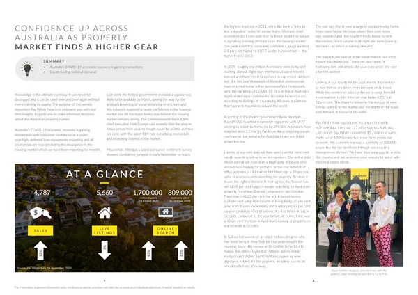 Ray White Now is produced in conjunction with real-time data from our 727 offices across Australia . Last month Ray White completed $ 5.7 billion in sales , made up of 6,500 property transactions across our network . We currently manage a portfolio of 200,000 properties for our landlords through our property management division . We have local area experts across the country and we welcome your enquiry to assist with your real estate needs .