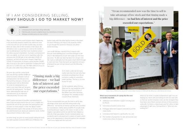 Many of our customers want to know what ’ s happening in the Australian property market now . While we work in the now and use our real time market data , we know there are many risks to the economy in the future . We still believe now is a good time to come to the market . It was heartbreaking to read that more Australians joined the jobless queue in September . Australia ’ s unemployment rate rose slightly to 6.9 per cent in September after the economy lost 29,500 jobs in the extended COVID-19 lockdown , up from 6.8 per cent in August . Stage four COVID-19 restrictions in Victoria caused another 36,000 jobs to be lost in the state in September , bringing the total jobs lost to 72,000 since July . The RBA shifted its focus to the jobs crisis rather than inflation forecasts . broken ranks with the other big four banks to lay down his latest thinking as he expects the property market to get through the pandemic relatively unscathed before booming .