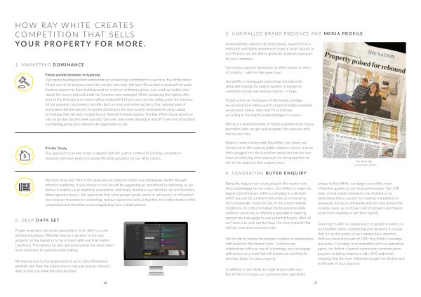 In addition to our ability to target broad audiences , Ray White Concierge , our communication specialists , unique to Ray White , can target one of the most influential audiences , our local communities . Our 118 years of real estate experience has enabled us to understand that a catalyst for creating competition is leveraging the local community and our data shows that in some cases , up to 60 per cent of property purchasers come from neighbours and their friends .