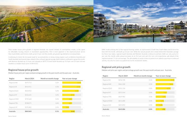 With results echoing that of the regional housing market , an improvement in both New South Wales and Victoria has been felt this month , with both up 0.3 per cent . While the annual growth rates remain behind the Australian average for these two states , regional South Australia and Western Australia continue to perform . Both are only up by 0.1 per cent this month , while annual increases sit at 15.4 per cent and 14.3 per cent respectively , well ahead of the regional national 7.9 per cent average . The affordability of assets in these locations have aided in spurring on continued activity , not only for owner occupation but by the investment market .