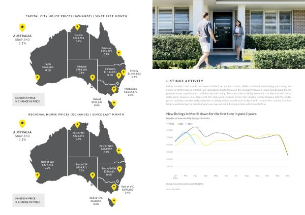 Listing numbers saw sizable decreases in March across the country . While sentiment surrounding purchasing has improved off the back of interest rate speculation , hesitation given the mismatch between supply and demand for the population has caused some trepidation around timing . The uncertainty in listing levels for this March is well below other years , however , this aligns with the early Easter season . Across the country , school holidays and this Easter period typically coincides with a reduction in listing activity usually seen in April . With much of the country in school holiday mode during the month of April , we may see limited listing activity until closer to May .