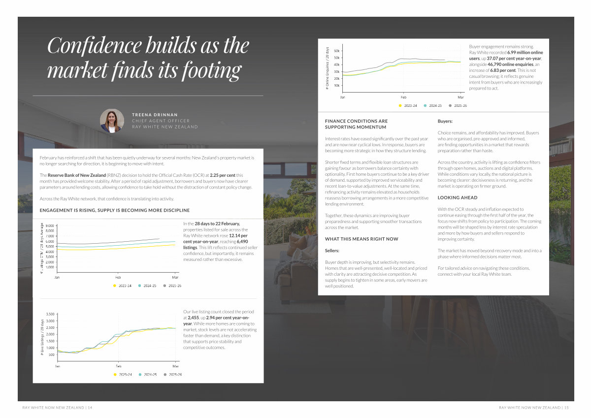 Buyer engagement remains strong. Ray White recorded 6.99 million online users, up 37.07 per cent year-on-year, alongside 46,790 online enquiries, an increase of 6.83 per cent. This is not casual browsing; it reflects genuine intent from buyers who are increasingly prepared to act.