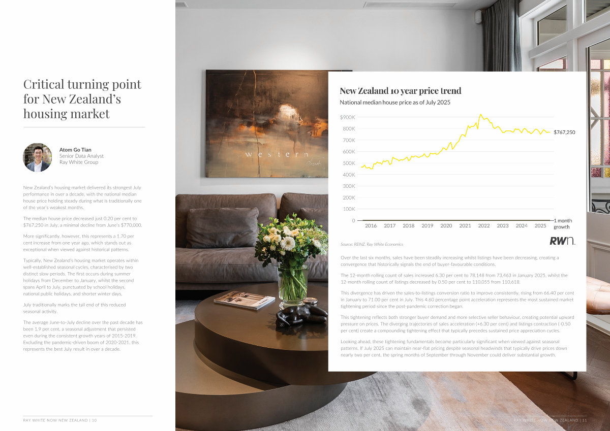 New Zealand’ s housing market delivered its strongest July performance in over a decade, with the national median house price holding steady during what is traditionally one of the year’ s weakest months.