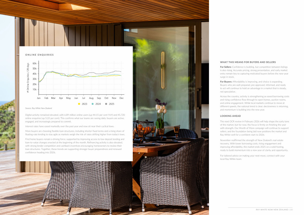 First home buyers remain a driving force, supported by improving access to low-deposit lending and loan-to-value changes enacted at the beginning of the month. Refinancing activity is also elevated, with strong lender competition and cashback incentives encouraging homeowners to review their loan structures. Together, these trends are supporting stronger buyer preparedness and renewed confidence heading into 2026.