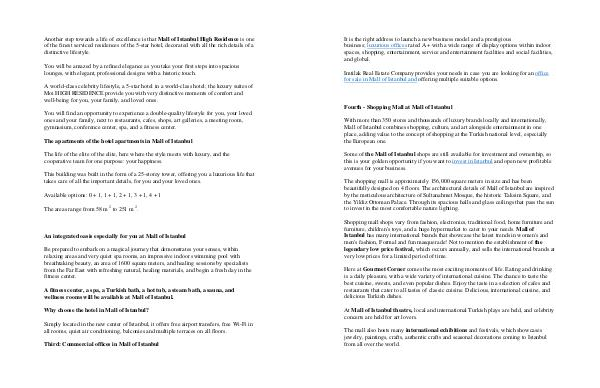 Another step towards a life of excellence is that Mall of Istanbul High Residence is one
