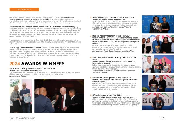 Debbie Tagg , Chair of the Reside Summit , emphasises the broader impact of the awards , “ The Reside Awards showcase industry best practices , inspiring others and elevating the reputation of professionals and organisations who excel within the sector . Our Reside Summit theme this year was ‘ Transforming Spaces , Enriching Lives ’, and the award winners embody this in every way . They are a part of the crucial change in South Africa ’ s residential property landscape , and we are delighted to honour them .”
