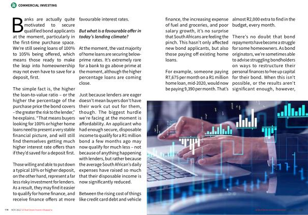 Just because lenders are eager doesn ’ t mean buyers don ’ t have their work cut out for them , though . The biggest hurdle we ’ re facing at the moment is affordability . An applicant who had enough secure , disposable income to qualify for a R1 million bond a few months ago may now qualify for much less – not because of anything happening with lenders , but rather because the average South African ’ s daily expenses have raised so much that their disposable income is now significantly reduced .