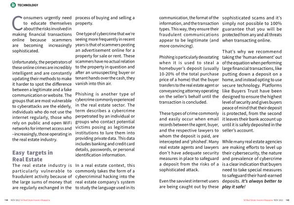 While many real estate agencies are making efforts to level up their cybersecurity , the nature and prevalence of cybercrime is a clear indication that buyers need to take special measures to safeguard their hard-earned deposits . It ' s always better to play it safe !