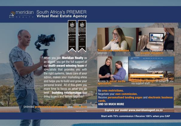 When you join Meridian Realty as an iAgent , you get the full support of our multi-award winning team of specialists that provides you with the right systems , takes care of your admin , makes your marketing shine and helps you to build and grow your personal brand . All of this gives you more time to focus on what you do best … building relationships that bring buyers and sellers together !