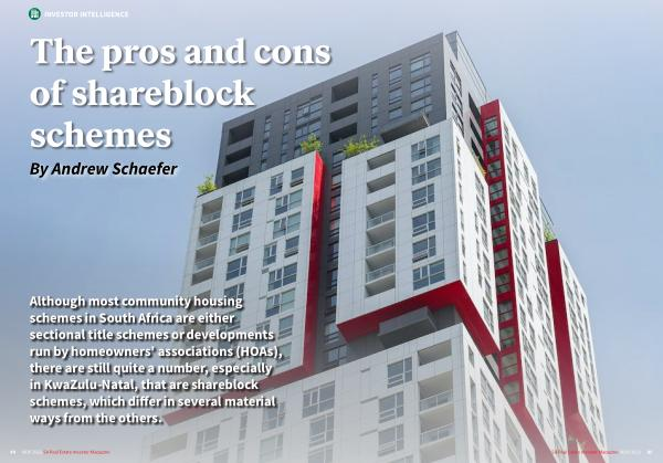 Although most community housing schemes in South Africa are either sectional title schemes or developments run by homeowners ’ associations ( HOAs ), there are still quite a number , especially in KwaZulu-Natal , that are shareblock schemes , which differ in several material ways from the others .
