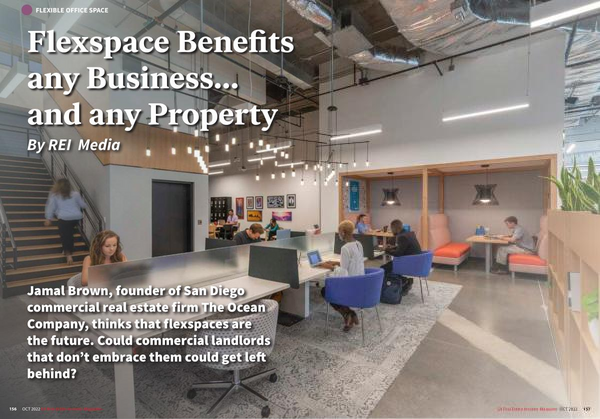 Jamal Brown , founder of San Diego commercial real estate firm The Ocean Company , thinks that flexspaces are the future . Could commercial landlords that don ’ t embrace them could get left behind ?