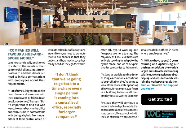 “ Instead they will continue to favour a hub-and spoke-model that consolidates a relatively decentsized central office , combined with the use of flexible workspaces or