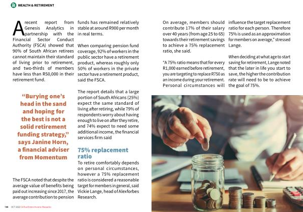 “ A 75 % ratio means that for every R1,000 earned before retirement , you are targeting to replace R750 as an income during your retirement . Personal circumstances will influence the target replacement ratio for each person . Therefore 75 % is used as an approximation for members on average ,” stressed Lange .
