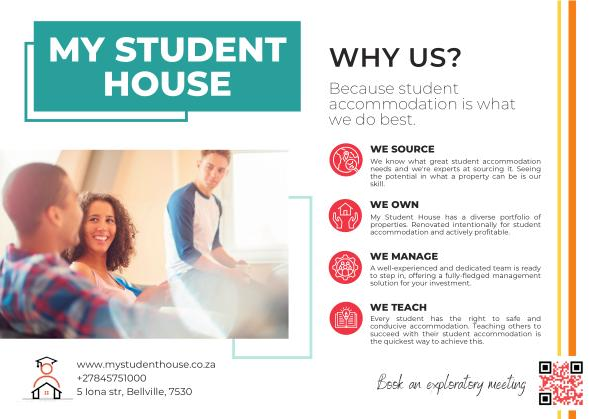 My Student House has a diverse portfolio of properties . Renovated intentionally for student accommodation and actively profitable .