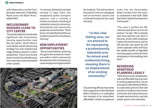 “ In contrast , Maitland is centrally located in Cape Town , has exceptional public transport options , and is already a mixed-use suburb consisting of residential , industrial , commercial , educational and community properties and amenities . These factors all make Maitland Metro an excellent location for inclusionary housing .”