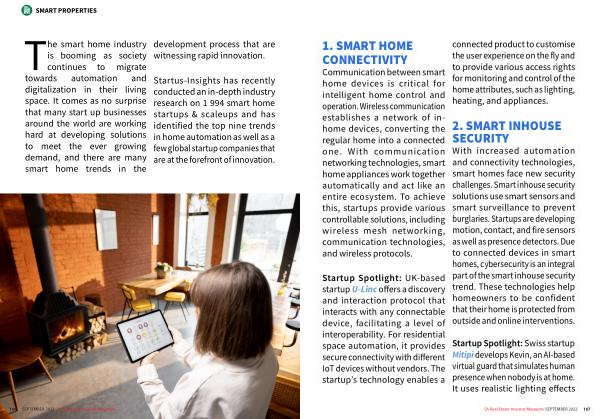 Startus-Insights has recently conducted an in-depth industry research on 1 994 smart home startups & scaleups and has identified the top nine trends in home automation as well as a few global startup companies that are at the forefront of innovation .