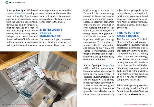 The Smart Home Trends & Startups outlined in this report only scratch the surface of trends that Startus-Insights identified in their data-driven innovation and startup scouting process . Among others , touchless technology , smart thermostats , and advanced privacy features will transform the sector as we know it today . Identifying new opportunities and emerging technologies to implement into your business goes a long way in gaining a competitive advantage .