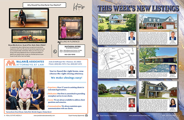 1824 FURMAN DRIVE – MLS # 20251762- 3 bedrooms, 2 bath ranchstyle home located in the heart of Florence. All brick / vinyl, low maintenance exterior. Convenient storage off carport with power, covered / enclosed back deck. $ 214,900. CALL TELEAHA AT COLDWELL BANKER MCMILLAN AND ASSOCIATES, 843-230-4149. |