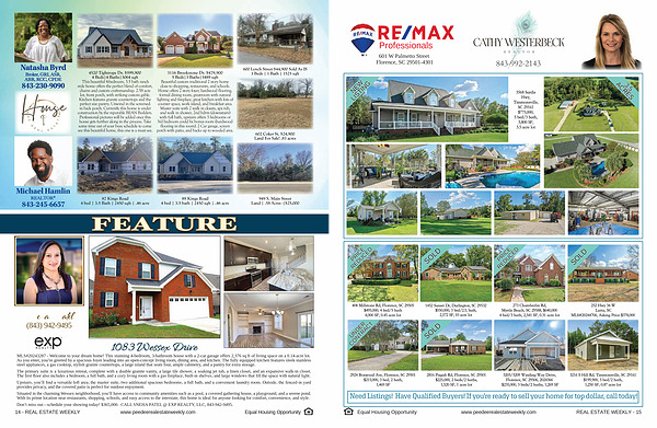 Don ’ t miss out — schedule your showing today ! $ 365,000 . CALL SNEHA PATEL @ EXP REALTY , LLC , 843-942-9495 . 14 - REAL ESTATE WEEKLY www . peedeerealestateweekly . com Equal Housing Opportunity
