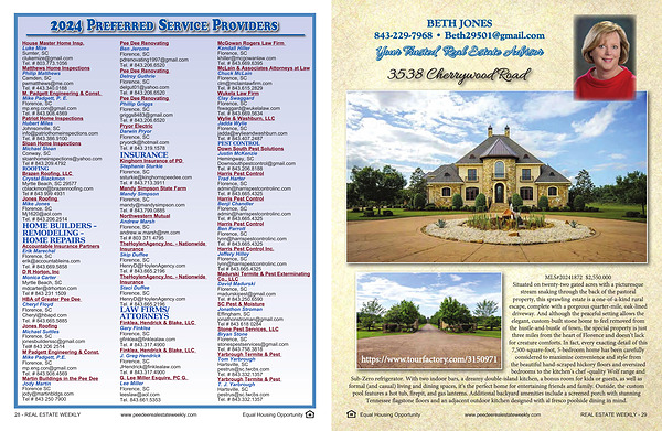 28 - REAL ESTATE WEEKLY www . peedeerealestateweekly . com Equal Housing Opportunity