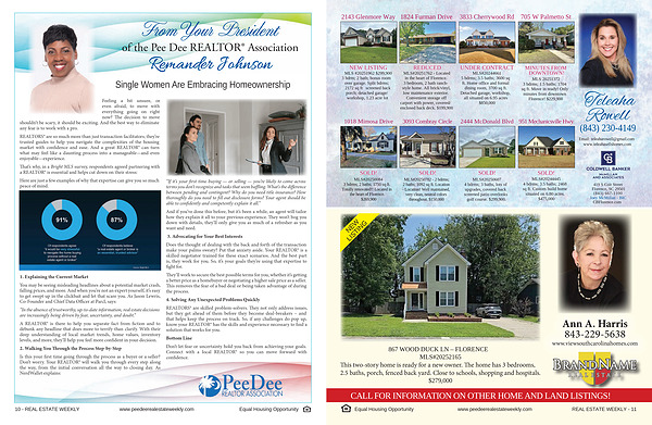 10- REAL ESTATE WEEKLY www. peedeerealestateweekly. com Equal Housing Opportunity