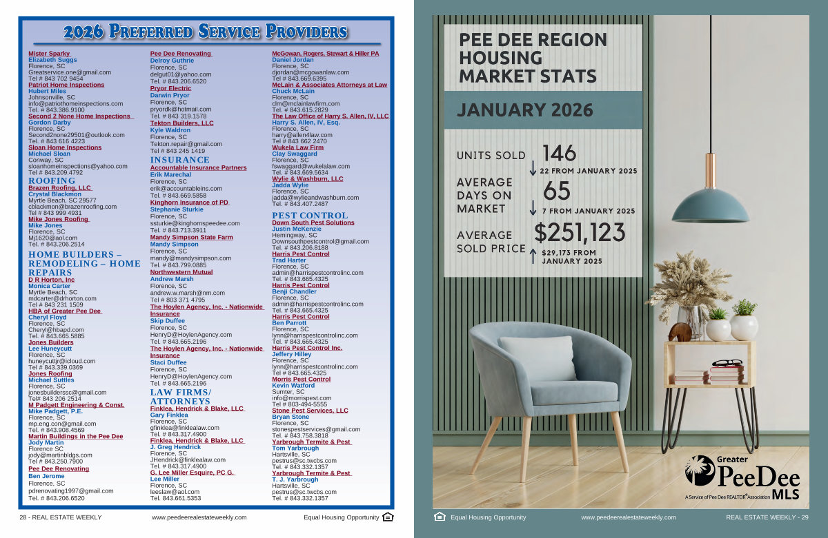 28- REAL ESTATE WEEKLY www. peedeerealestateweekly. com Equal Housing Opportunity